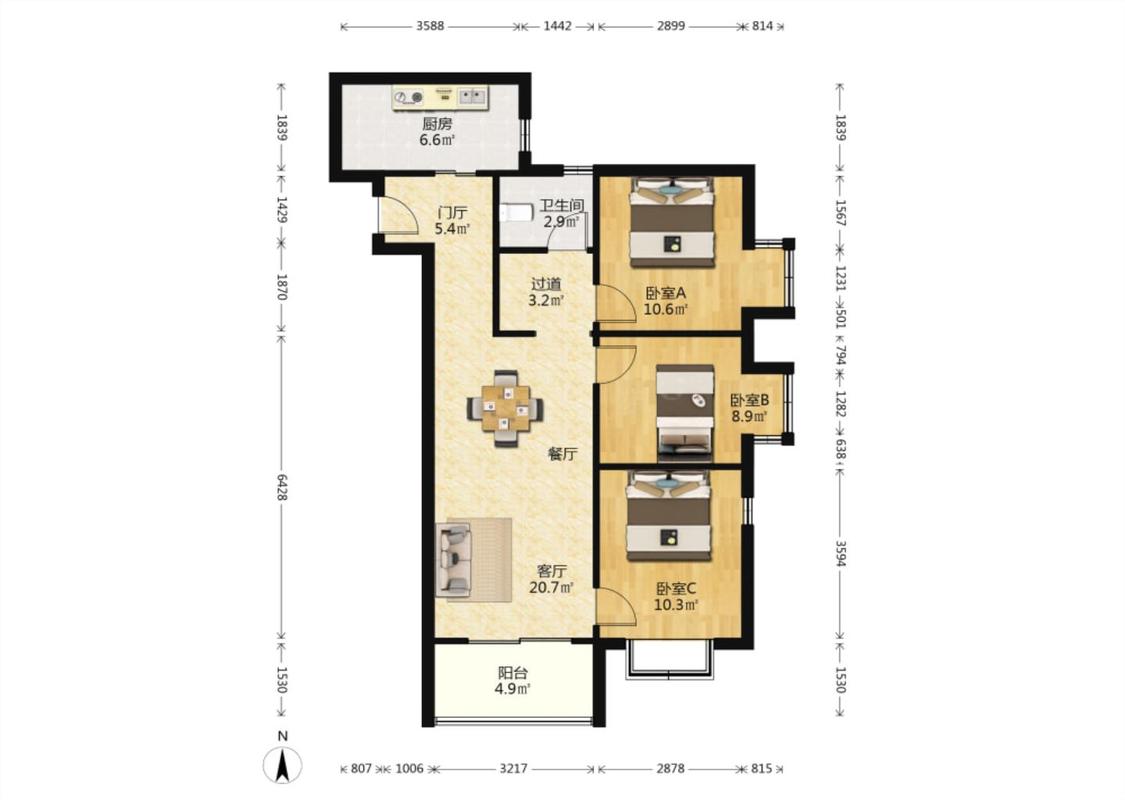 3室1厅