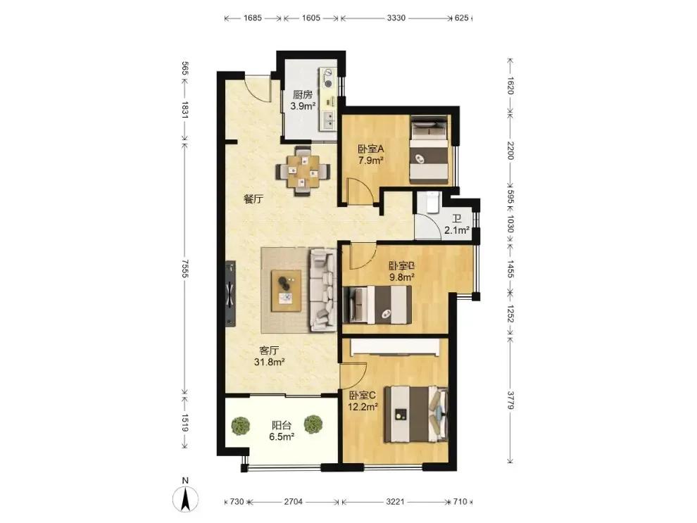 3室2厅 万科广场幸福里