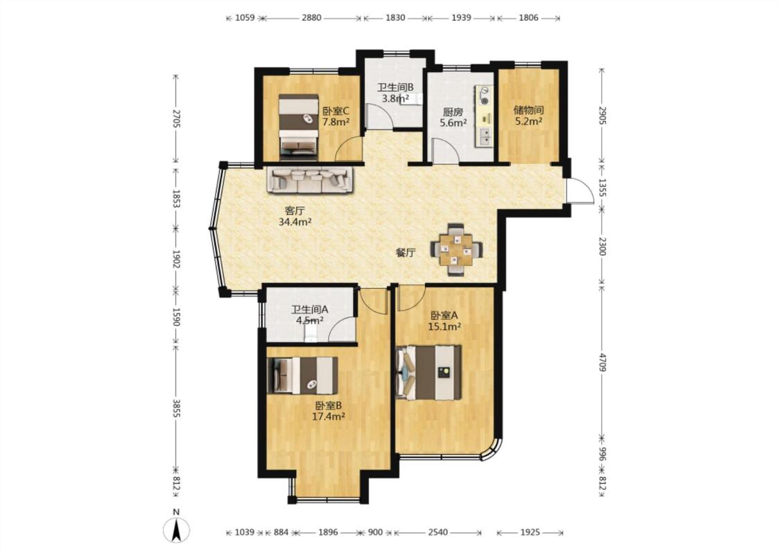 3室2厅 云龙华府(二期)
