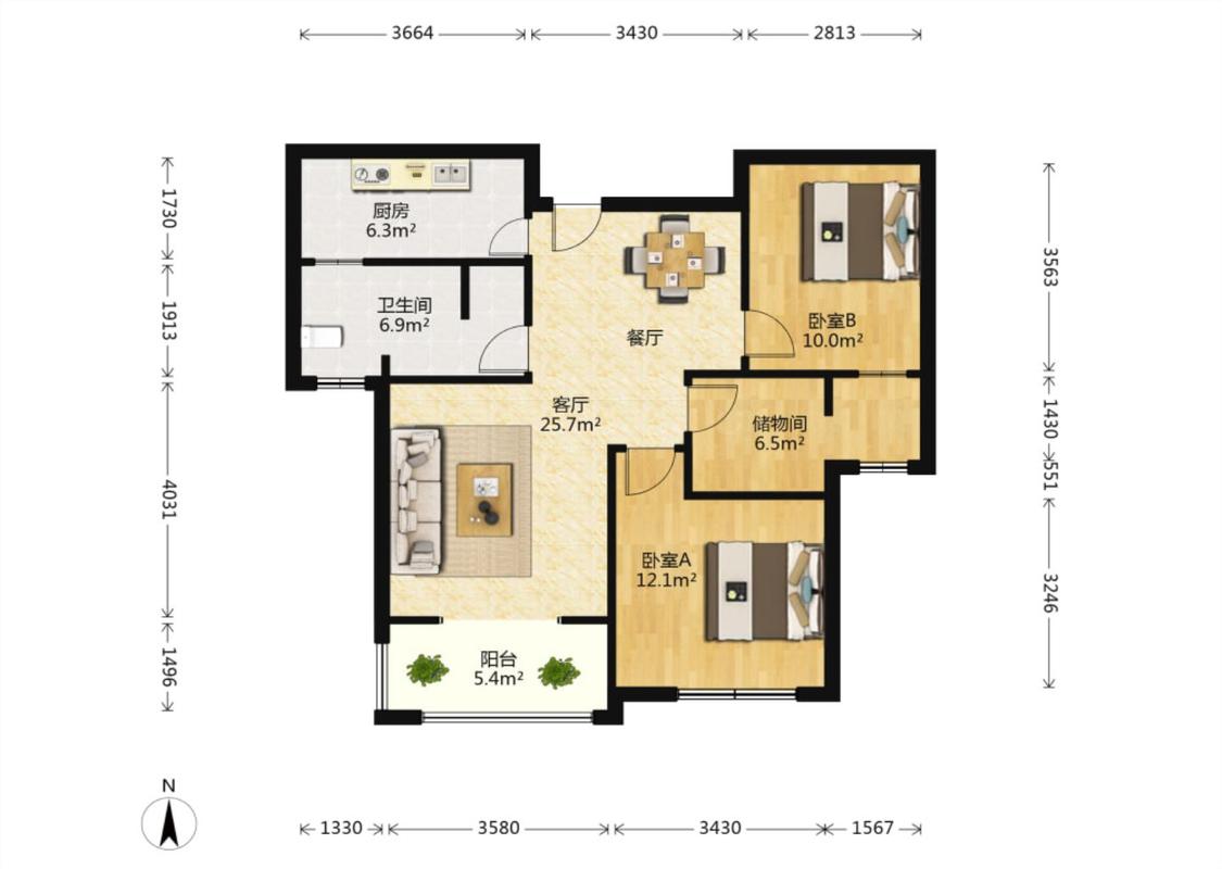 3室1厅