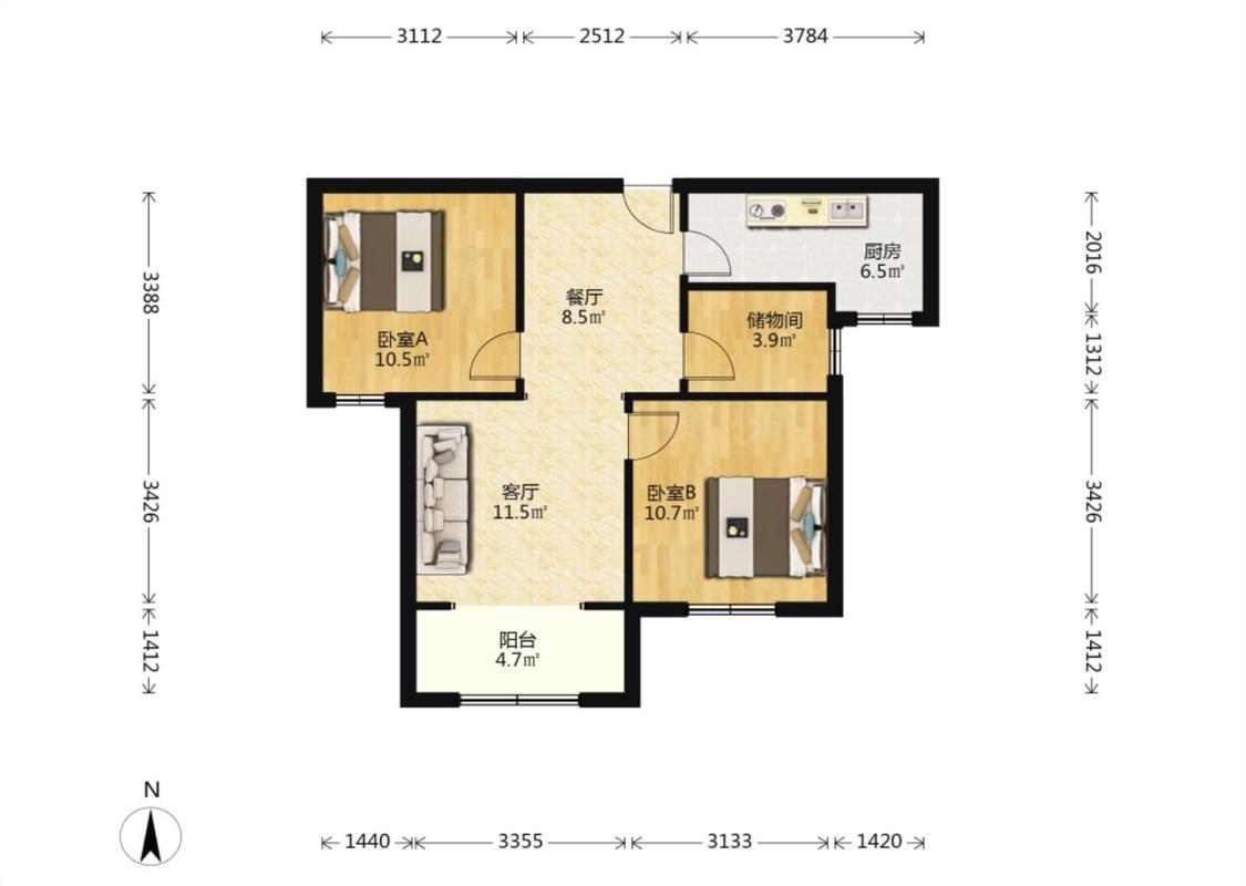 2室2厅 荣盛城(三期)