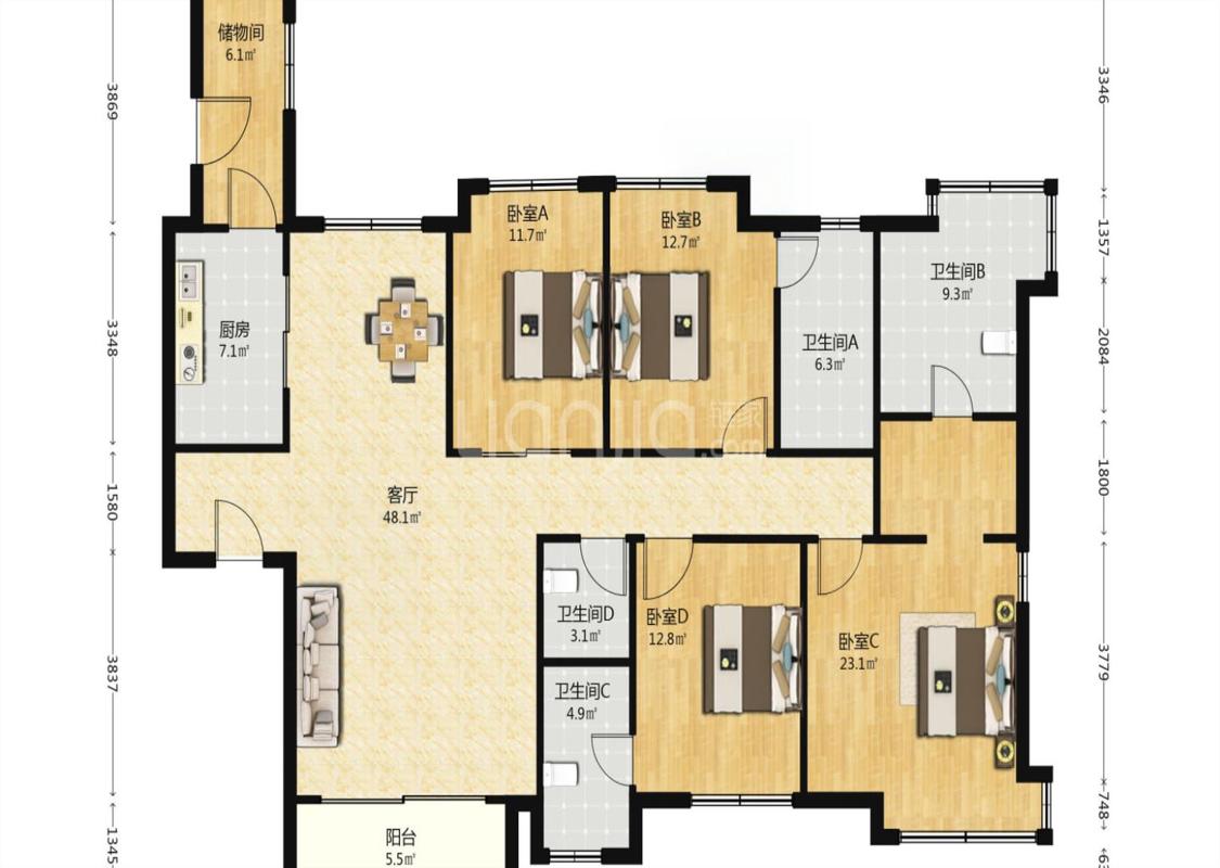 4室2厅 玺悦龙城